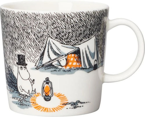 Tämän mukin kuvitus perustuu Tove Janssonin ‘Muumipappa ja meri’ -kirjaan ja se on osa isompaa ‘Alkuperää kunnioittaen’-sarjaa. Astiasto täydentää Arabian Muumi-valikoimaa pysyvästi. Mustavalkoinen ja tunnelmaltaan intensiivinen astiasto on ajaton kokonaisuus klassikkoastioiden jatkoksi, sillä se sopii yhteen monien värien kanssa. Tyylillisesti astiasto paljastaa Tove Janssonin poikkeuksellisen kyvyn käyttää viivan piirtoa tunteiden ja tunnelmien luontiin.